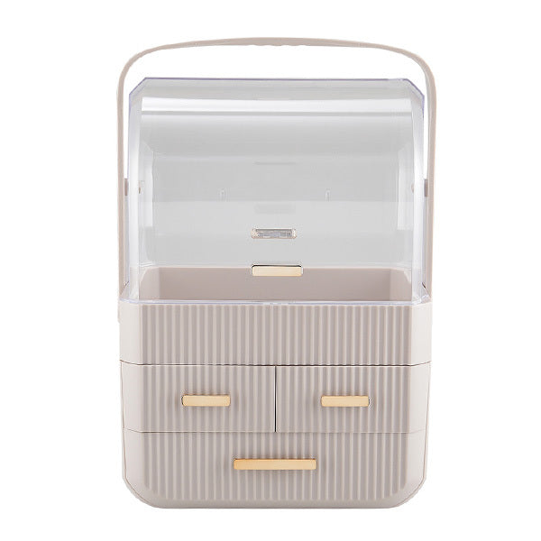 • Includes three drawers: two smaller ones for lipsticks and mascaras.