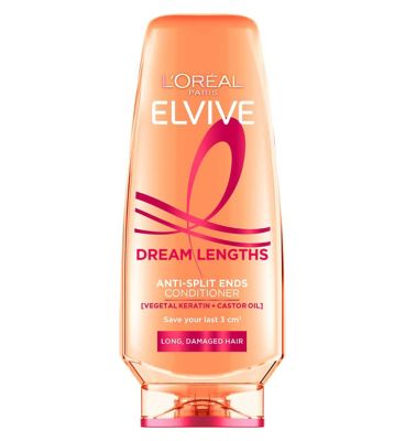 Read MoreDreaming of beautiful, long hair but struggling to achieve your dream lengths? Discover Elvive Dream Lengths Conditioner to fulfil your long hair goals, by L'Oréal Paris. Our Anti-Split Ends Conditioner instantly helps repair your hair and reinforce fragile lengths. Split ends appear sealed, saving your last 3 cm*. The formula is powered with [Vegetal Keratin & Castor Oil] to strengthen your hair fibre from root to tip to help keep your hair long! Suitable for all hair types and textures. *Instrumental test after application of shampoo + conditioner.