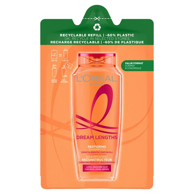 LOréal Paris Elvive Dream Lengths Restoring Shampoo Refill Pouch for Long Hair 250ml
