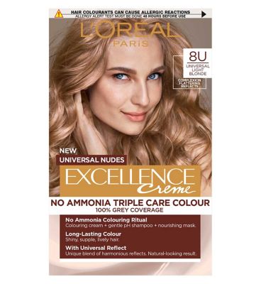 This new Excellence Universal Nudes from L'Oréal Paris provides permanent at-home hair colour without harsh chemicals. The formula features Micro-Keratine and is specifically designed for a pleasant user experience. It ensures excellent results, including comprehensive coverage for grey hairs.