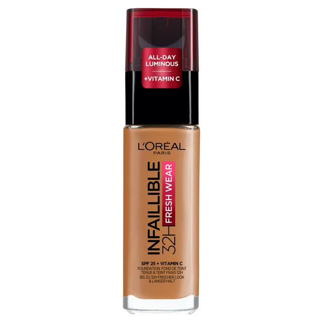 Meet the L'Oréal Paris Infallible 32H Fresh Wear foundation, formulated with Vitamin C for reliable wear throughout the day. This foundation offers complete coverage while maintaining a remarkably lightweight feel on the skin. Its high-performance characteristics mean your makeup remains intact through daily activities.