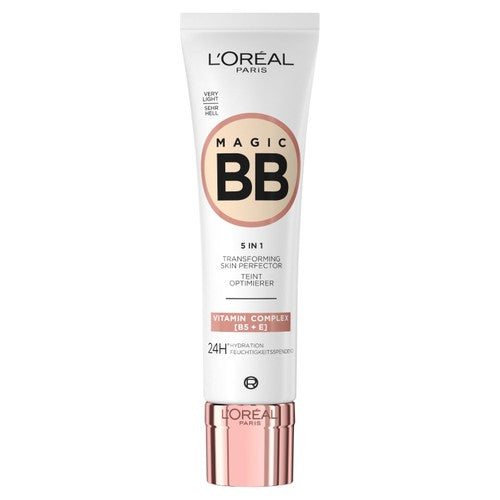 Perfect your complexion with L'Oreal Paris Magic BB Cream in the shade 01 Very Light. This lightweight formula blends seamlessly, transforming to match your unique skin tone for a natural finish. It is tested under dermatological control and is suitable for sensitive skin types.