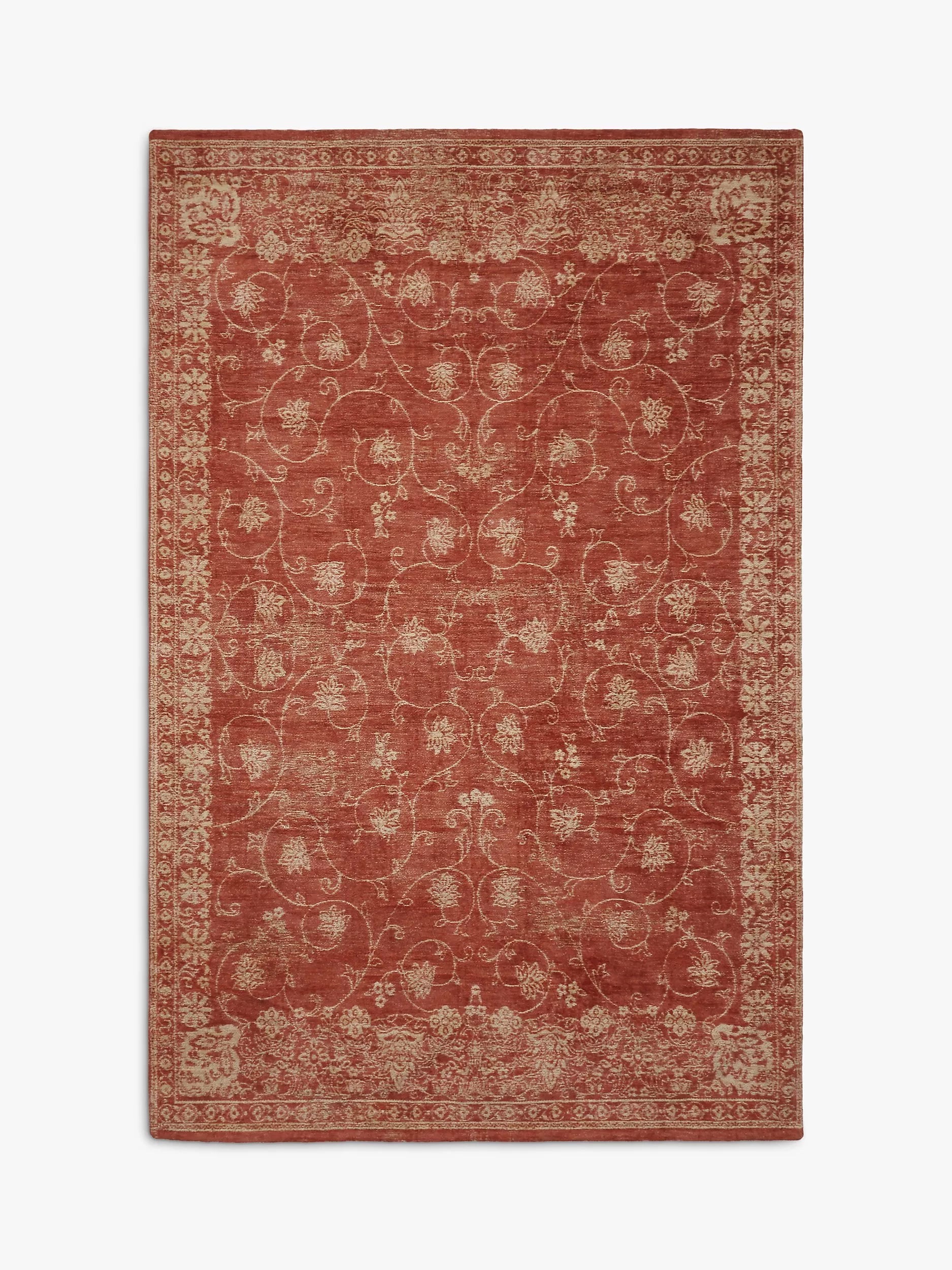 This gorgeous ‘vintage aesthetic’ flat-weave rug features a traditional floral pattern that's finished using terracotta hues to flood your home with warmth. Woven to create a piece that's hardwearing for you to treasure forever. All Louis de Poortere rugs are crafted to be 100% recyclable.