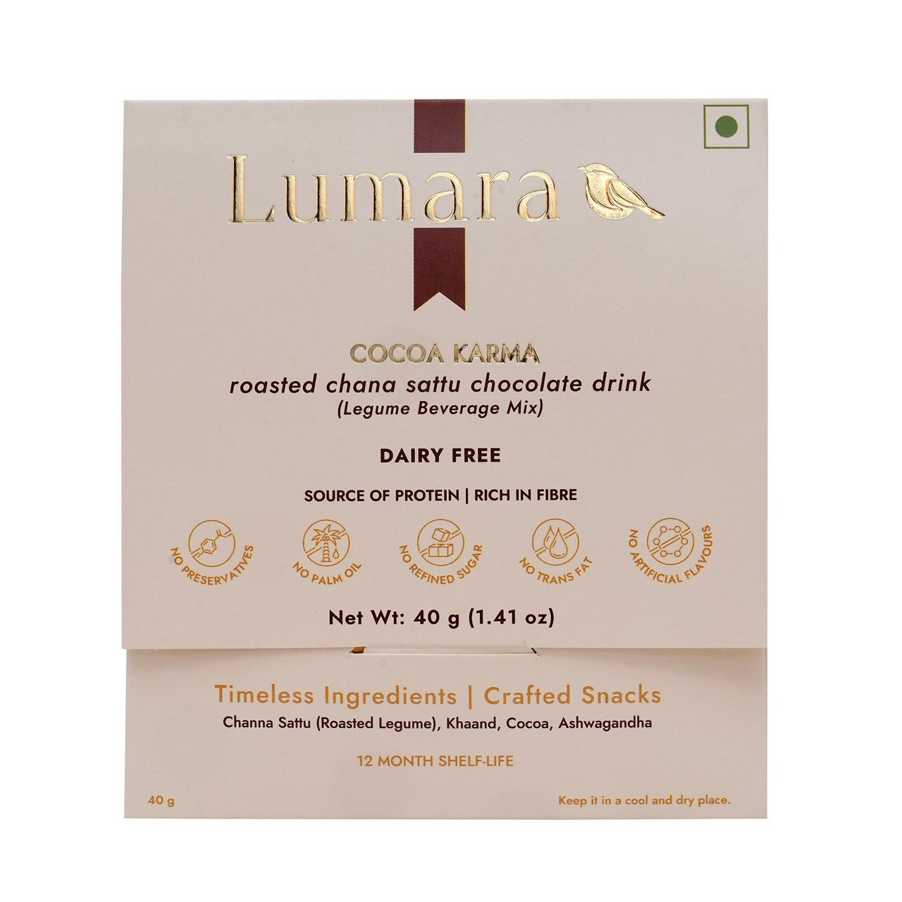 Lumara Cocoa Karma offers a comforting, rich chocolate experience inspired by childhood indulgence. This unique preparation blends the earthy depth of roasted legume sattu with velvety cocoa flavouring. It provides a wholesome twist on traditional hot chocolate, delivering pure, chocolatey joy in every serving.