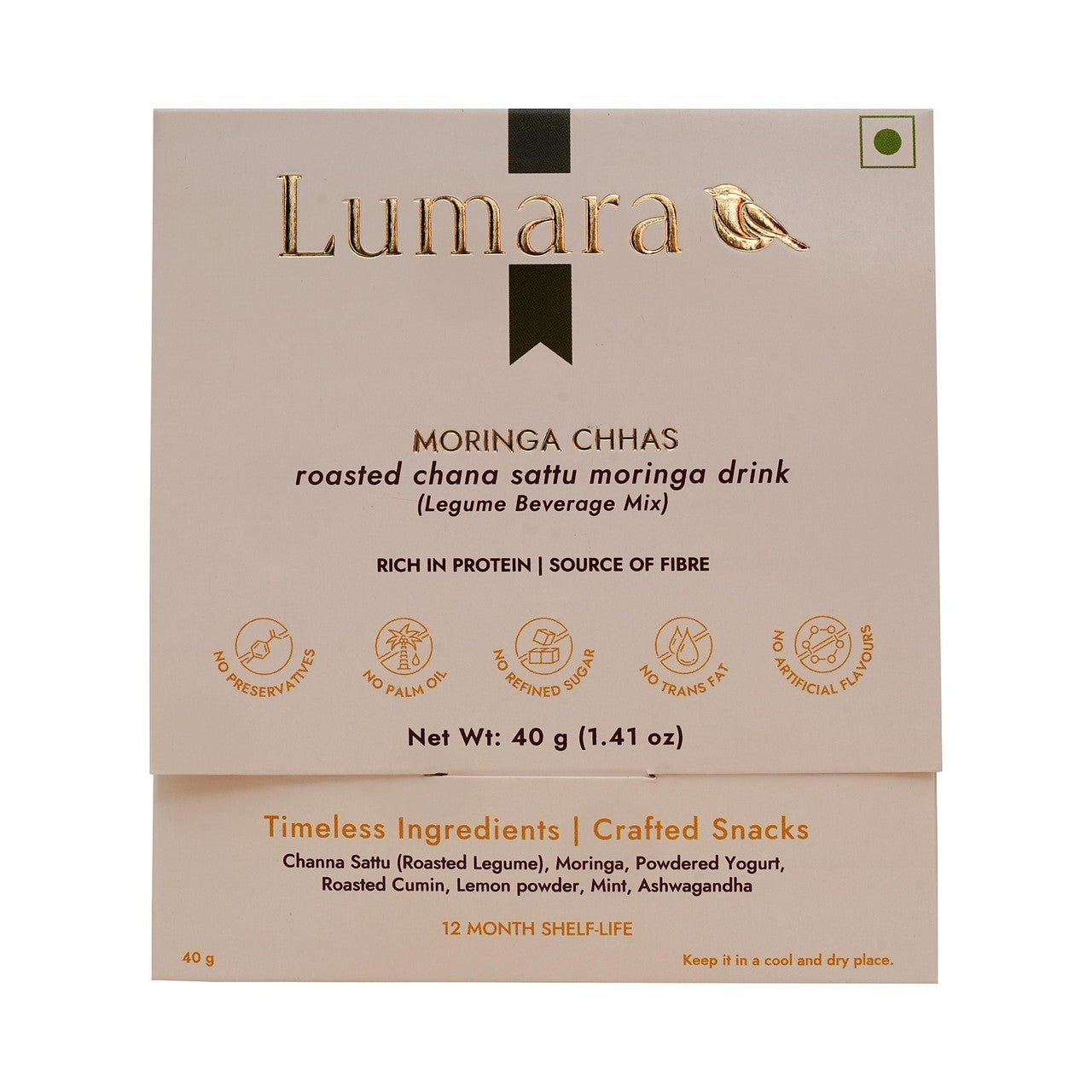Lumara Moringa Chhas captures the essence of traditional Indian chhas, offering a moment of balance and flavour in every serving. This modern preparation combines nutrient-rich moringa with roasted legume Sattu and aromatic spices. It provides a light yet satisfying refreshment designed to suit contemporary busy lifestyles, bringing harmony to your day.