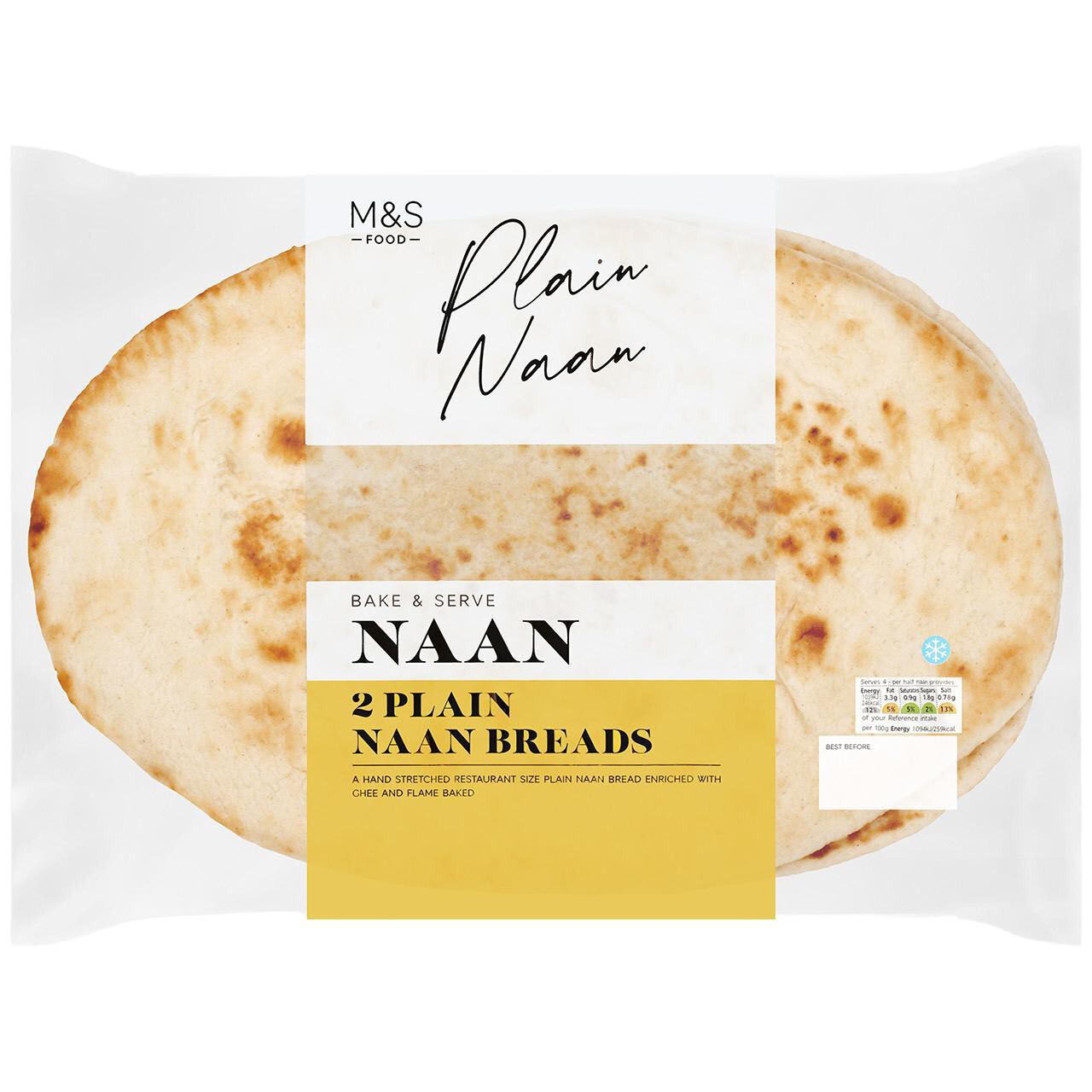 Enjoy the authentic taste of the high-quality M&S Bake & Serve Naan Breads at home. This pack contains two hand-stretched, restaurant-sized flatbreads ready for quick oven preparation. They are enriched with ghee and traditionally flame baked for a superior flavour profile and satisfying texture.