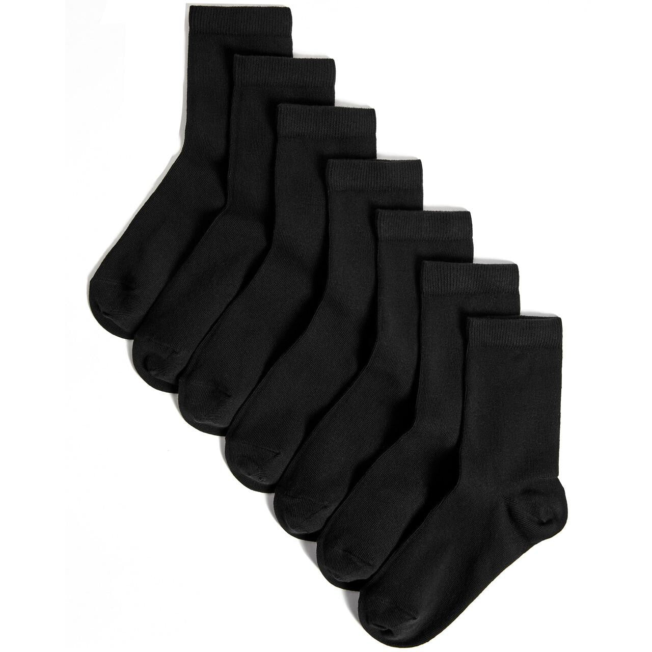 Acquire a practical supply for their daily requirements with this seven pack of M&S black ankle school socks, ideal for regular wear. These essential items are designed for everyday use, ensuring a comfortable and consistent fit throughout the demanding school day. They represent a convenient addition to any child's uniform collection.