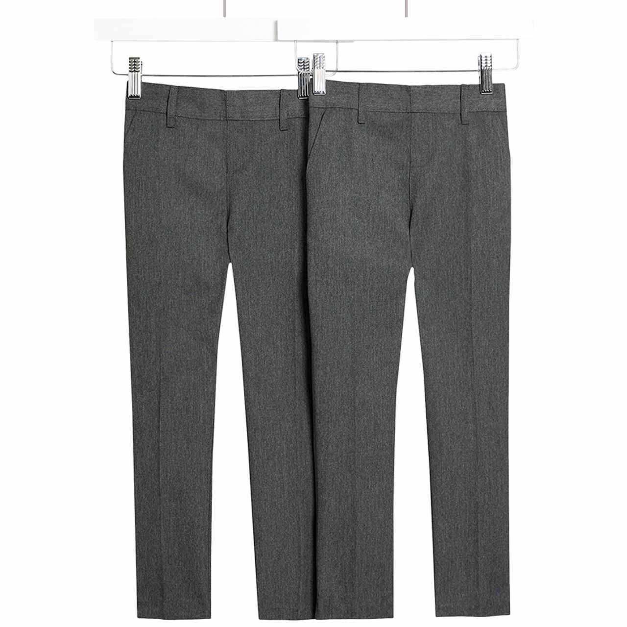 These M&S boys' skinny leg school trousers are designed for a modern fit and practical wear. Supplied as a convenient two-pack, they are ideal for regular school attendance, offering value and durability. They feature practical elements designed to maintain a neat appearance across the school week.
