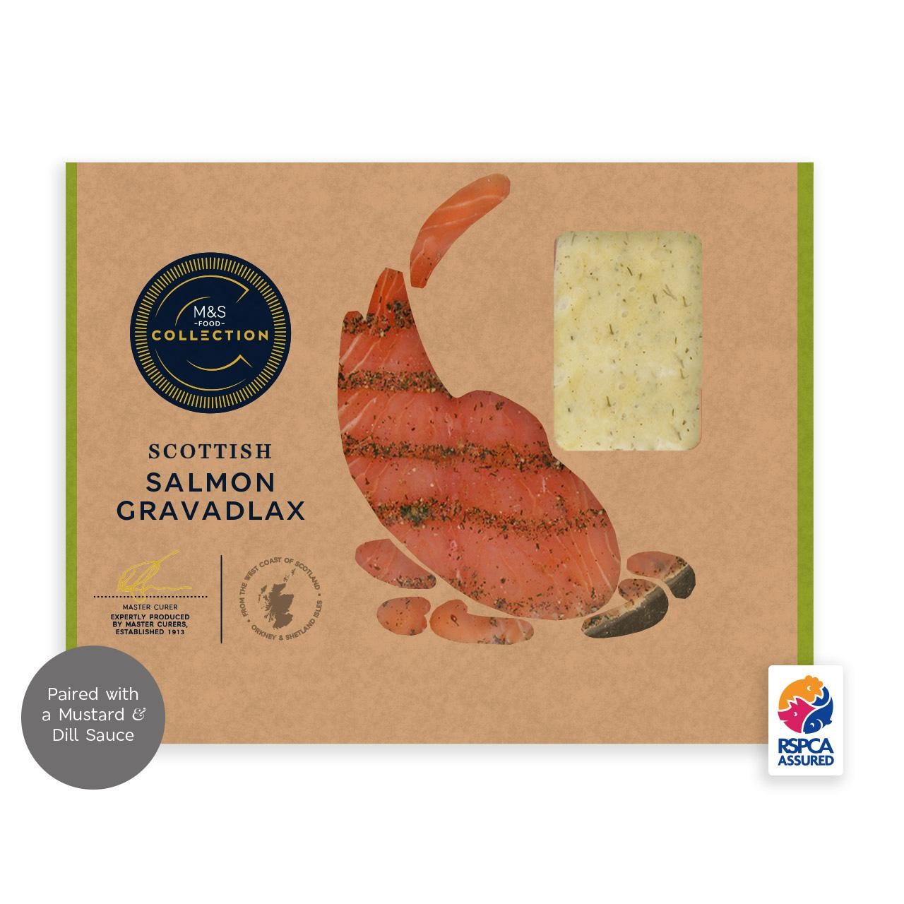 This M&S Collection offering features premium Caledonian Gold™ Scottish Salmon prepared as a classic Gravadlax. The expert preparation involves curing the fish delicately in salt and sugar to enhance its natural texture and taste. This superior selection serves two people, making it ideal for special starters or light additions to a platter.