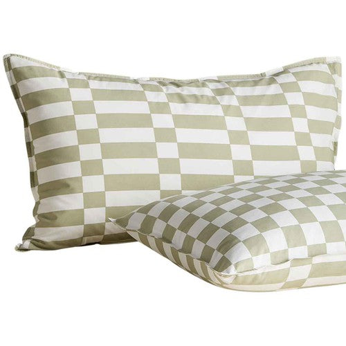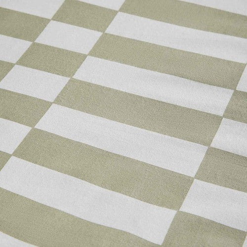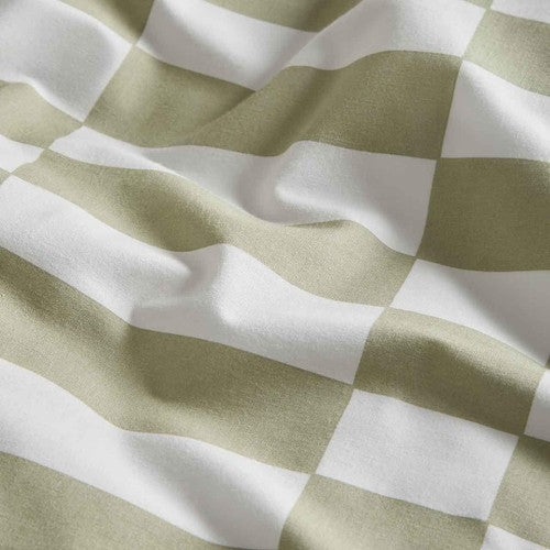 Achieve a contemporary aesthetic easily with this block geometric print cotton-rich bedding set. It features crisp percale fabric, offering a durable finish and a soft, luxurious feel against the skin. Changing linens is simple due to the included button fastening on the duvet cover. This double set in green mix updates your space effectively.