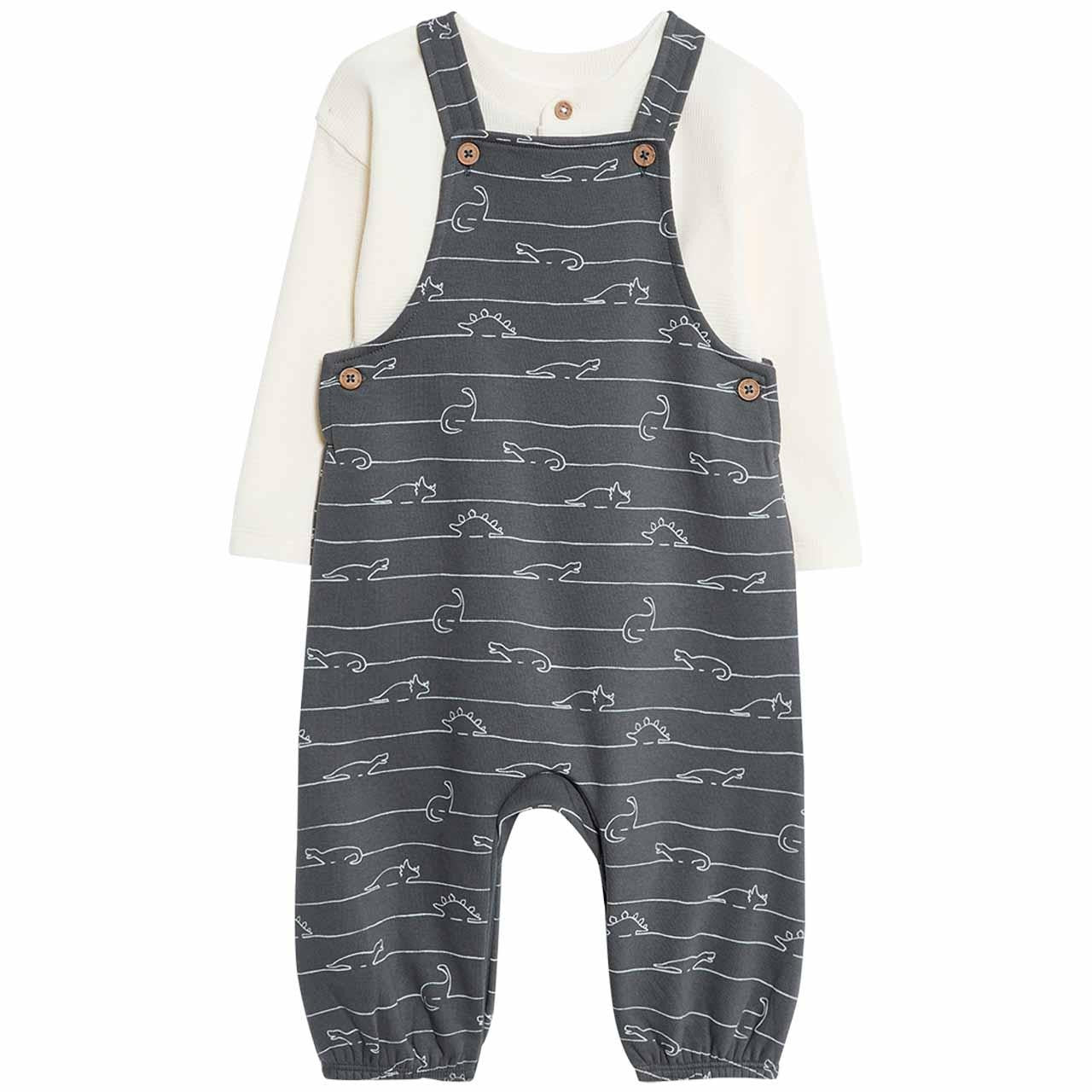 M&S Dino Jersey Dungarees with T-shirt, 3-6 Months, Carbon