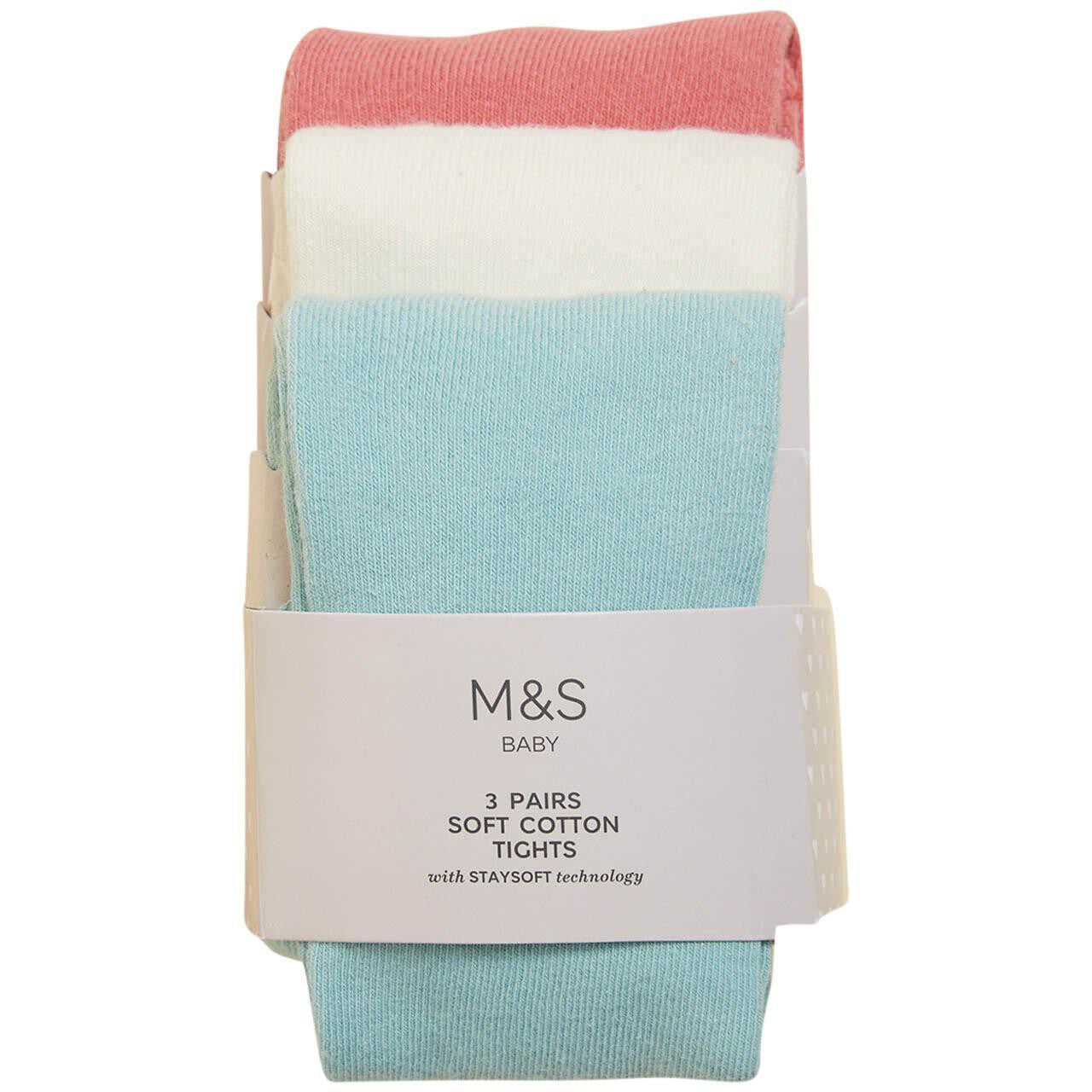 M&S Floral Tights, 3 Pack, 6-12 Months, Pink Mix