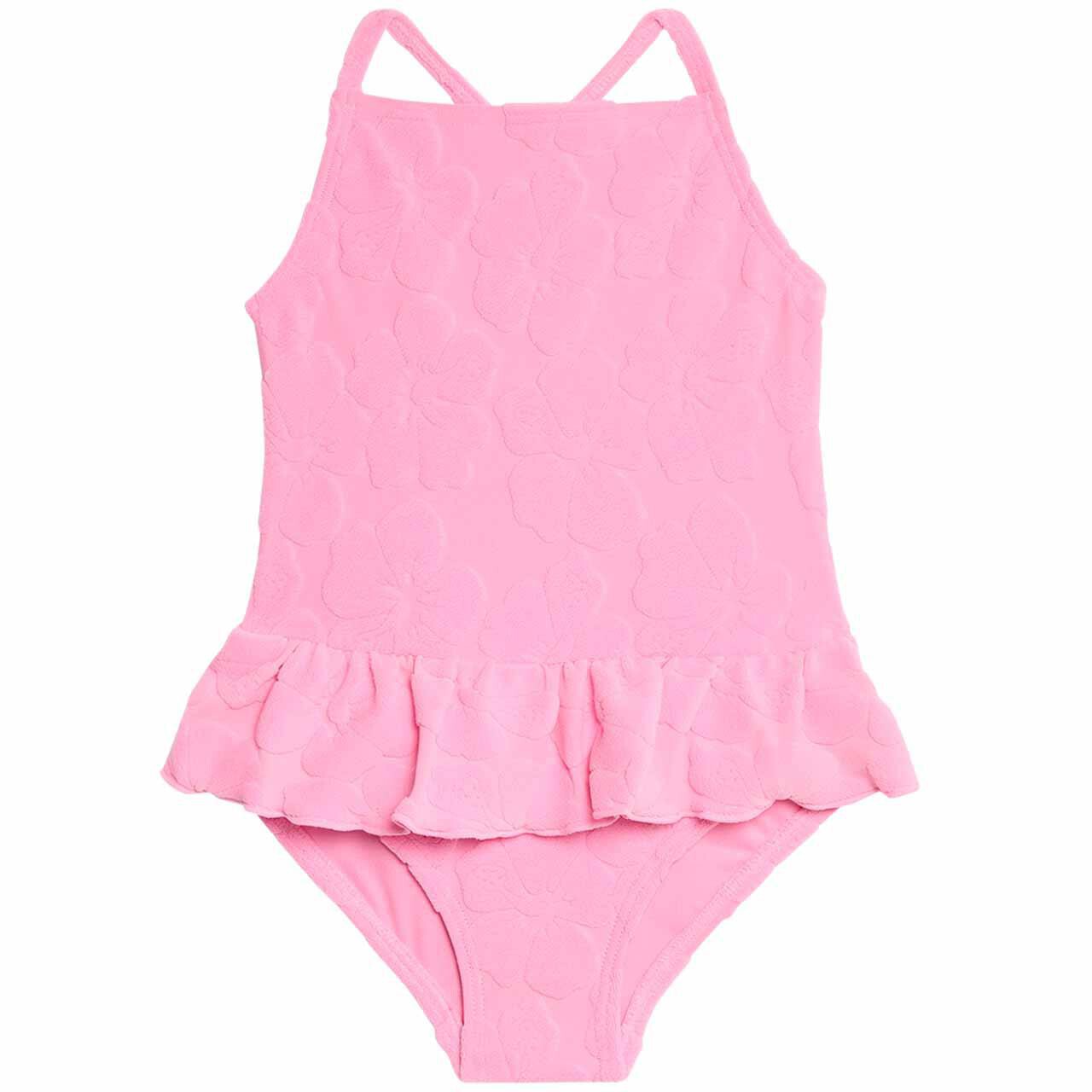 M&S Girls Floral Textured Frill Swimming Costume, 3-4 Years, Pink
