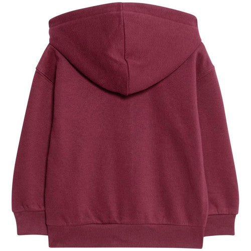 This claret coloured kids zip hoodie offers a thoughtful combination of cosy texture and functional design for ages 2-3 years.