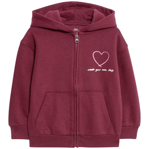 M&S Heart Zip Through Hoodie, 2-3 Years, Claret
