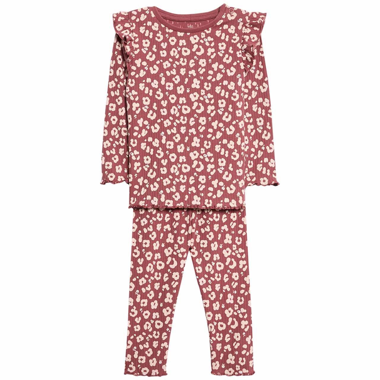 This stylish two-piece ensemble brings a fun, wild touch to your little one's wardrobe with its charming leopard print design. The set includes a comfortable long-sleeved top and coordinating leggings, both constructed from soft, cotton-rich, stretchy ribbed jersey fabric. Designed for practicality and charm, this is an excellent choice for everyday wear, ensuring comfort across all her wiggles and playtime.