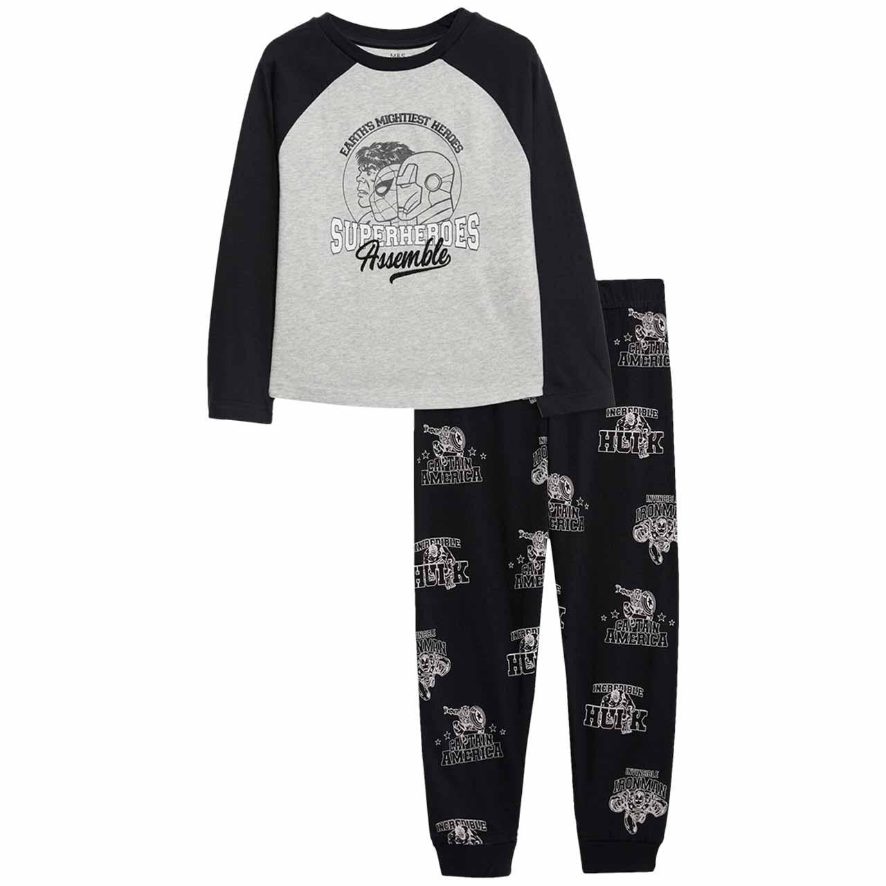 Transform bedtime into an adventure with these pure cotton pyjamas from M&S. The set ensures a comfortable night's sleep with its regular fit design throughout. This fun two-piece set features a long-sleeved top and coordinating pull-on bottoms decorated with Marvel Avengers characters.