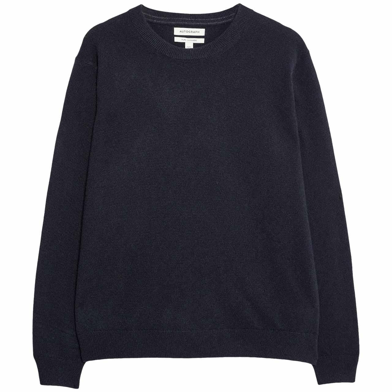 This M&S Autograph crew neck is expertly crafted from 100% pure cashmere for superior softness. The classic navy design offers timeless style, making it a versatile addition to any wardrobe. Experience the lightweight warmth and luxurious texture synonymous with this premium natural fibre.