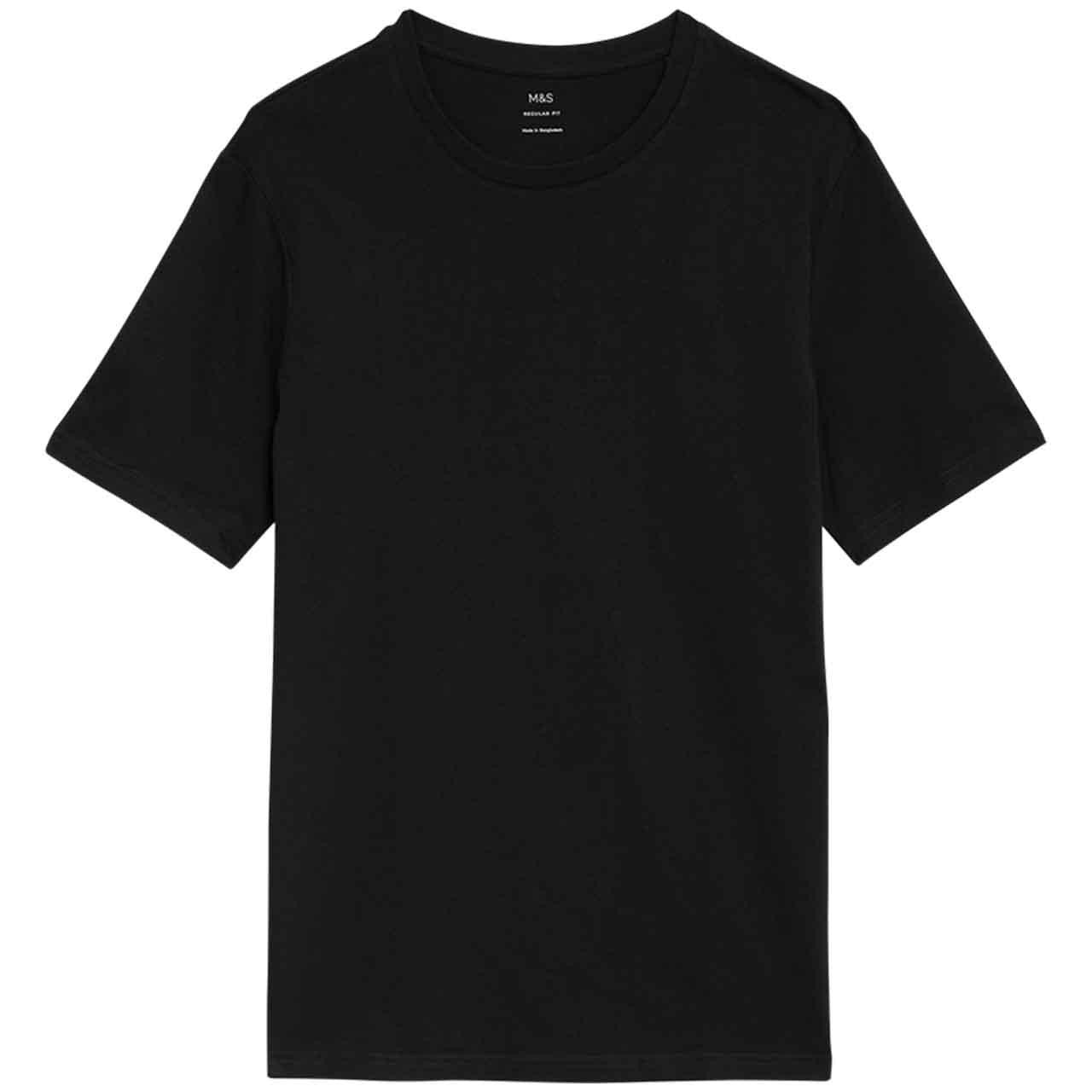 M&S Mens Cotton Crew Neck T-Shirt, S, Black