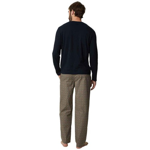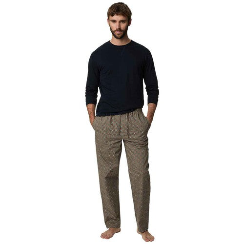 These pure cotton pyjamas are designed for comfort during cooler nights. Offering a cosy, regular fit, this set combines classic styling with practical features for relaxation. The plain top includes a traditional crew neck and long sleeves for warmth retention.
