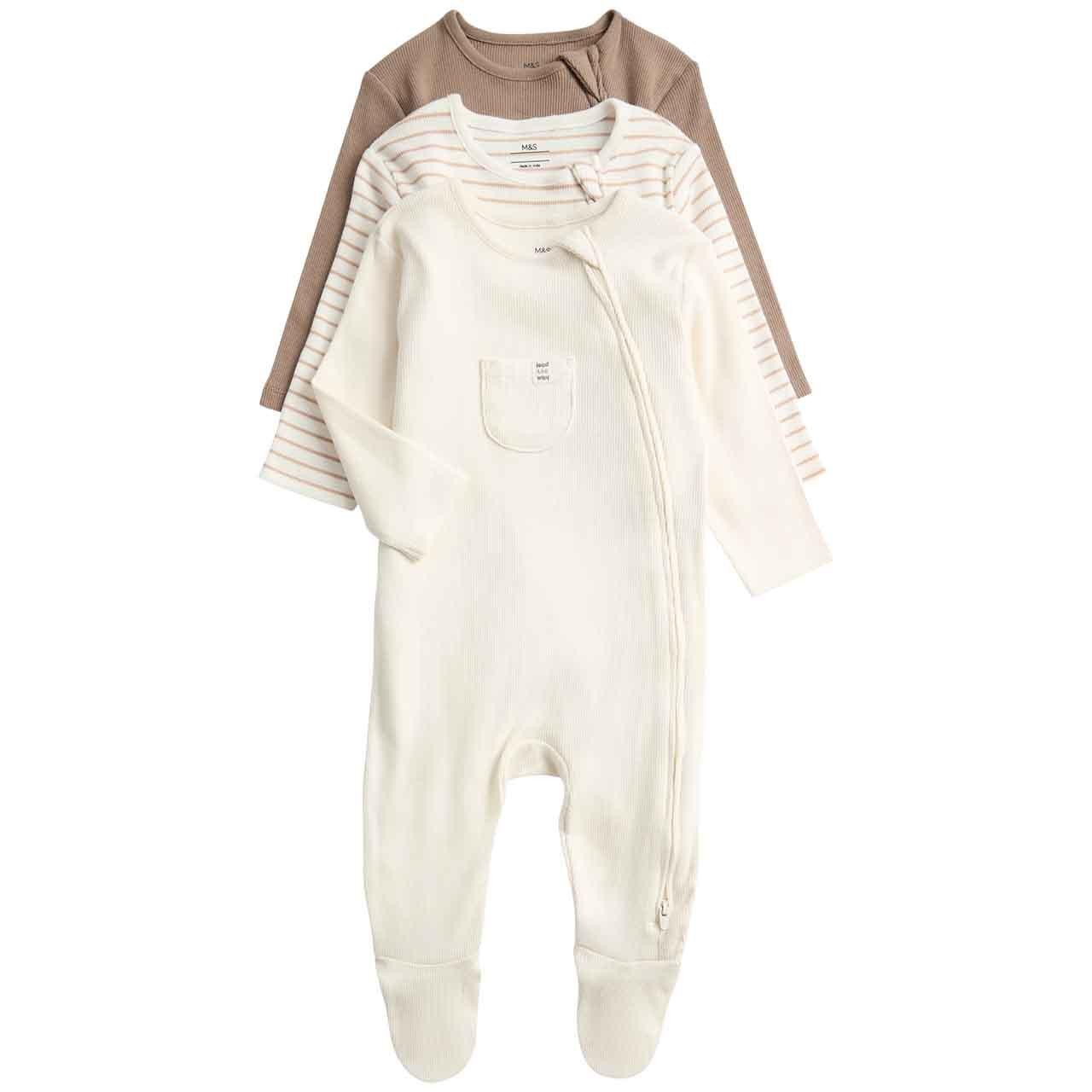 Ensure your baby enjoys snug comfort with this durable and easy-to-maintain cotton zip sleepsuit collection from M&S.