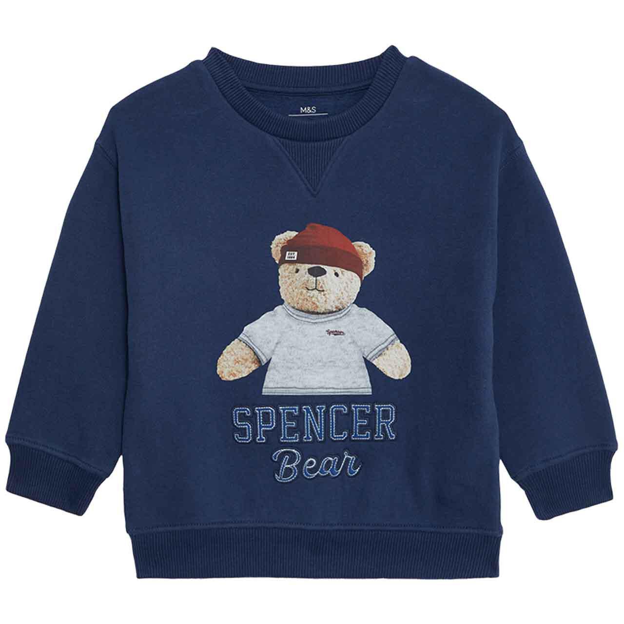 This navy cotton-rich sweatshirt provides a comfortable option for casual wear or play sessions. It is designed with a regular fit silhouette, ensuring ease of movement throughout the day. The garment features a classic round neckline and full-length sleeves for good coverage.