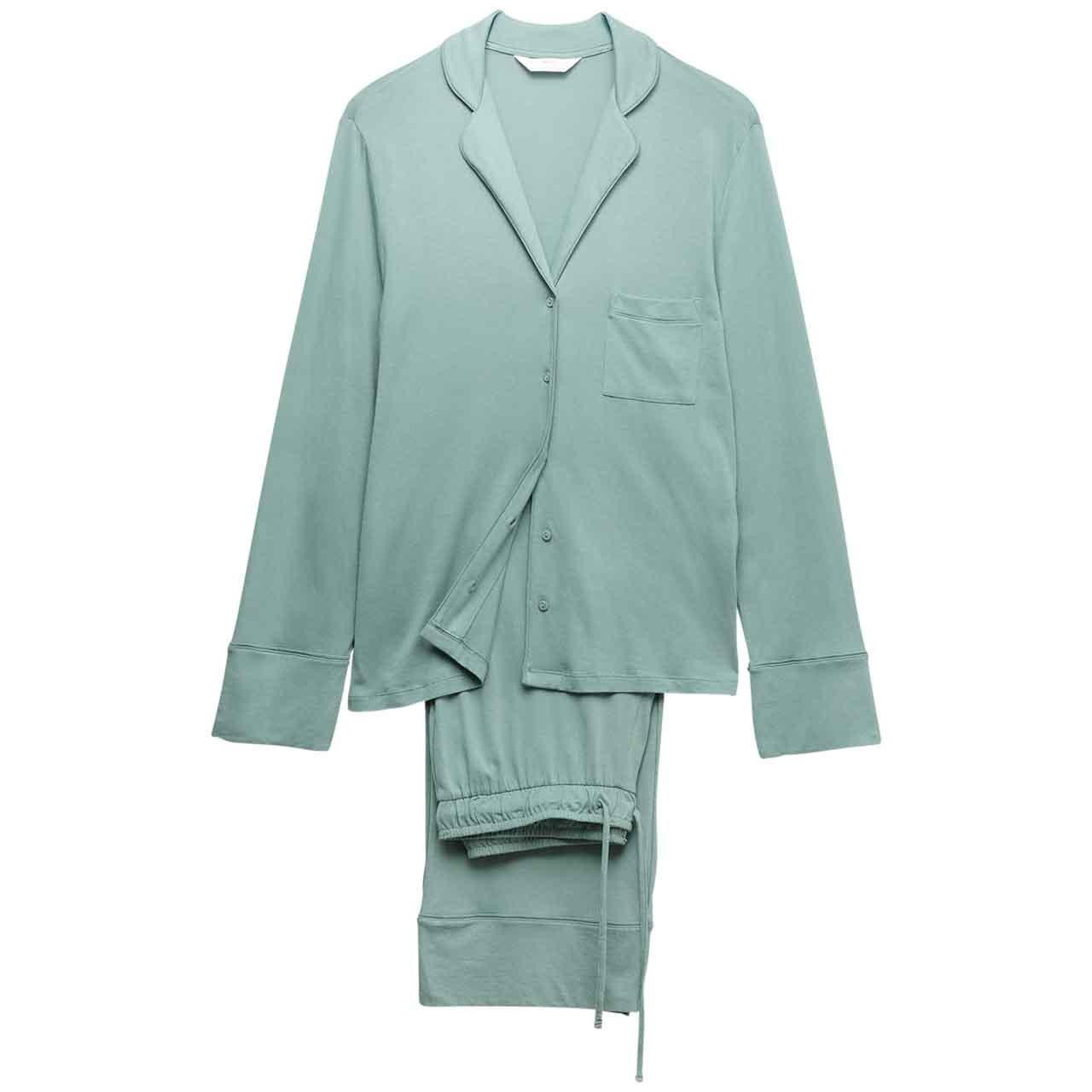 M&S Womens Cotton Modal Revere Pyjama Set, XS, Green
