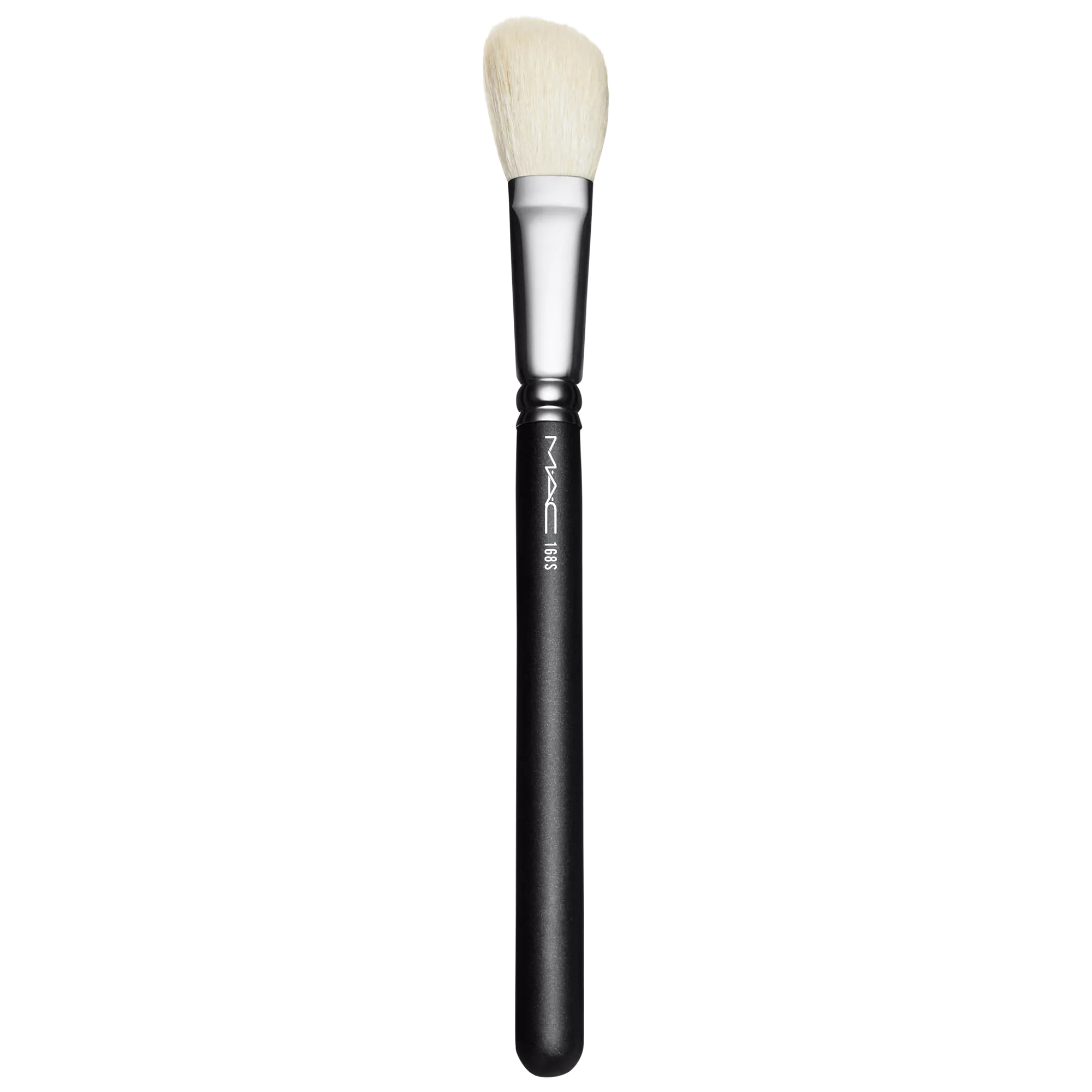 This ultra-smooth concealer brush features a triangular shape with short bristles and a flat slanted top.