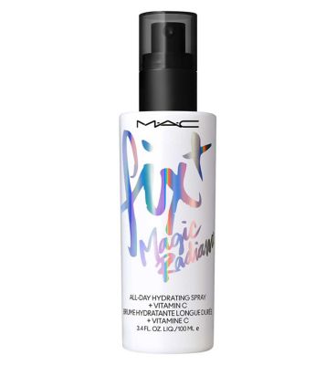 Achieve an all-day hydrated glow with the MAC Fix+ Magic Radiance Setting Spray in the 100ml size. This revitalising formula now features an improved fine-mist pump for precise application. It is specifically designed to nourish the complexion while imparting a boost of softness and radiance.
