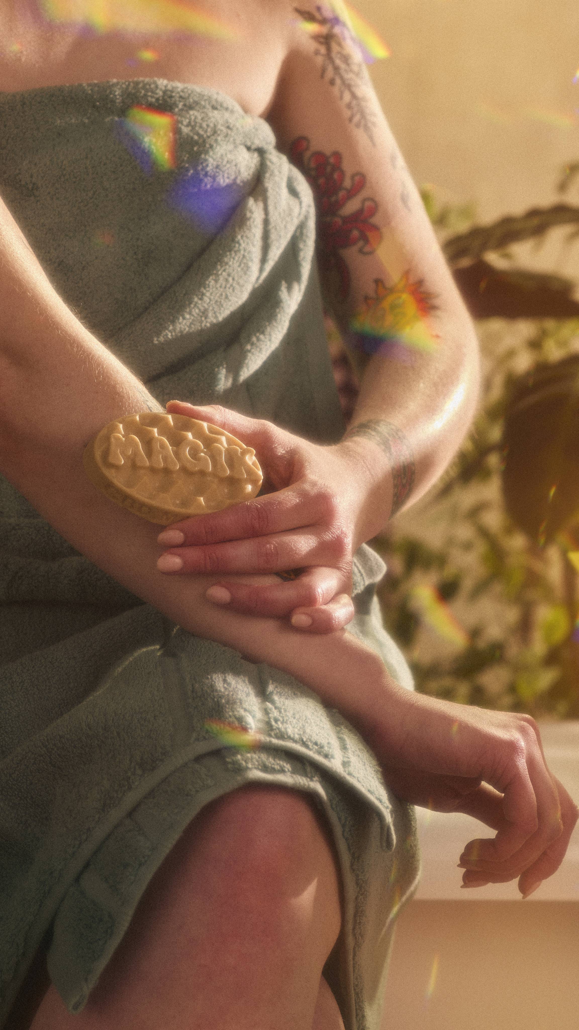 A rubdown with our powerful magnesium, adaptogen and CBD massage bar won't fix that fight with your partner* or get your boss off your back. But we're confident it will put you in a better state of mind to deal with whatever life throws at you. Made with a generous helping of CBD and plenty of magnesium oil to promote rest and wellbeing, we’ve also treated this solid moisturiser to a triple whammy of panax ginseng, ashwagandha infusion and shiitake mushroom: adaptogenic ingredients that are said to promote resilience to stress. Let our most relaxing bar yet melt over your skin and melt away the dramas of the day, if only for a spell.