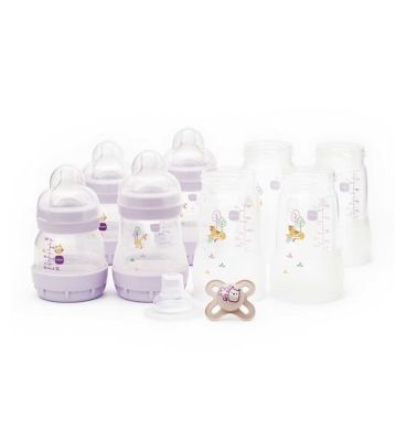 MAM's Easy Start set provides essential feeding equipment designed to adapt as your baby develops. This collection includes four bottle bodies and various teat sizes to facilitate a smooth transition during feeding stages. The components work together to support your baby's changing needs.