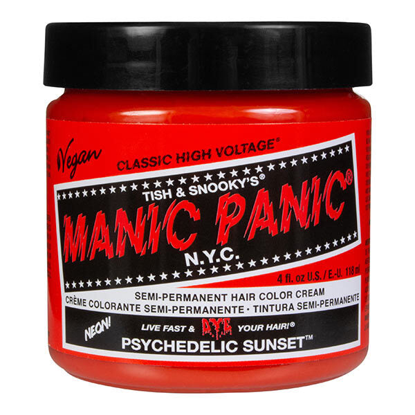 Read MoreAmp up the wow factor with the Manic Panic Classic High Voltage Psychedelic Sunset Hair Dye! This semi-permanent dye is vegan friendly & PPD free.