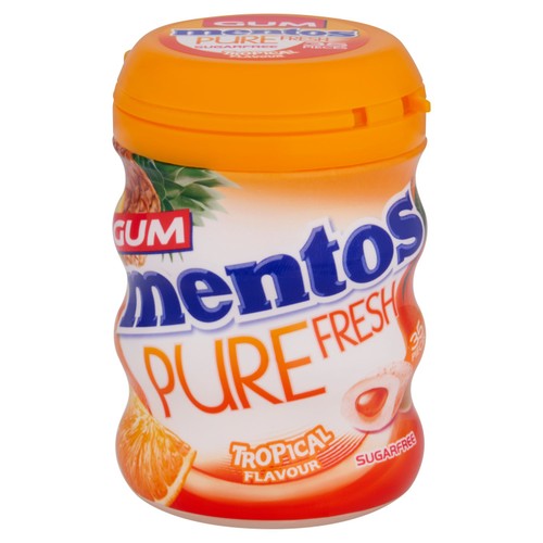 Enjoy the exotic taste sensation of Mentos Pure Fresh Tropical Flavour gum. This sugar free gum is presented in a convenient, bright orange dispenser bottle for refreshment anytime, anywhere. The tropical blend offers a fruity and intense flavour experience lasting after every chew.