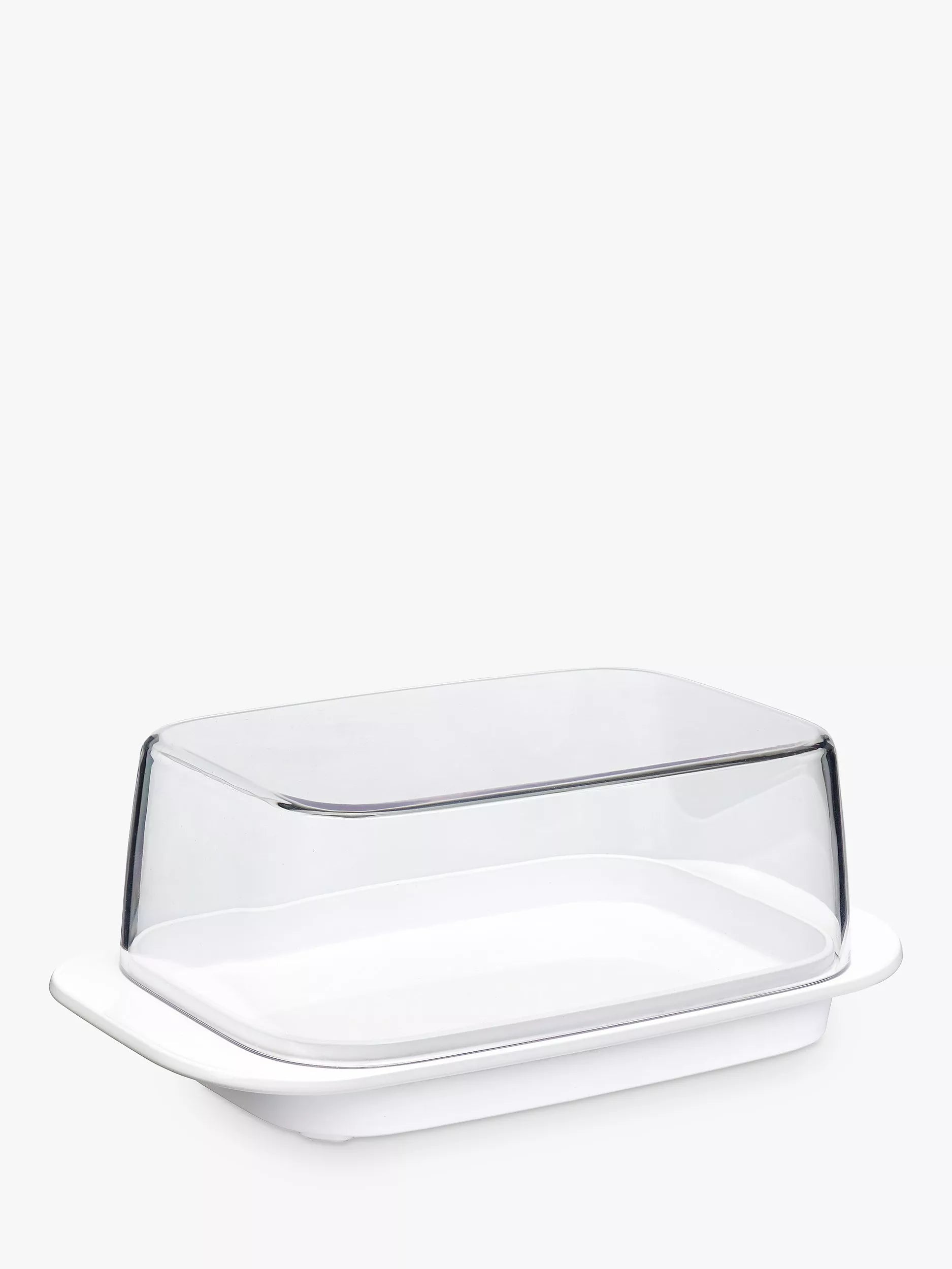 Indoors or outdoors, this butter dish is a contemporary look for the table. Ideal for storing up to 250g of butter hygienically, it comes with a see-through lid.