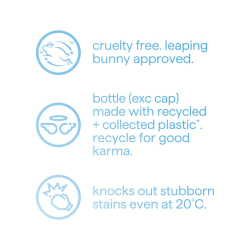 Knocks out tough stains, Works wonders at 20°C, Revives colours, Designed for your home with the future in mind, Cruelty free, Leaping bunny approved, Dermatologically tested