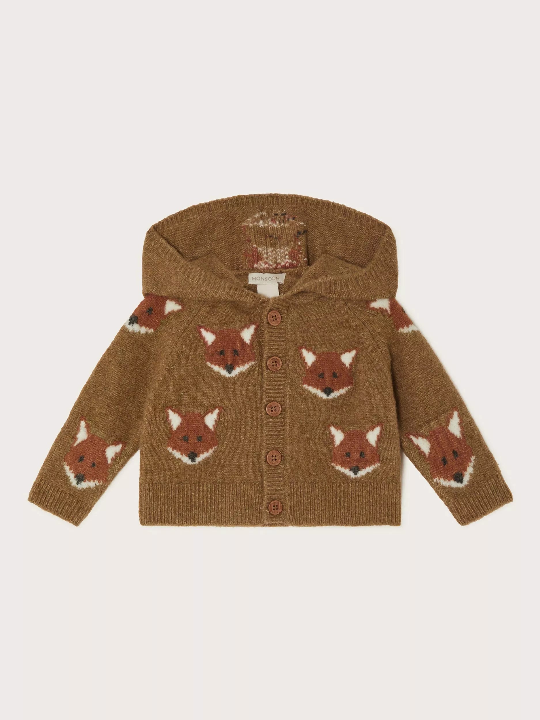 Stitched all-over with cute foxes, this cardigan will keep them warm when the weather's chilly. Crafted from a soft fabric with stretch, it also has a hood for extra cosy cuddles.