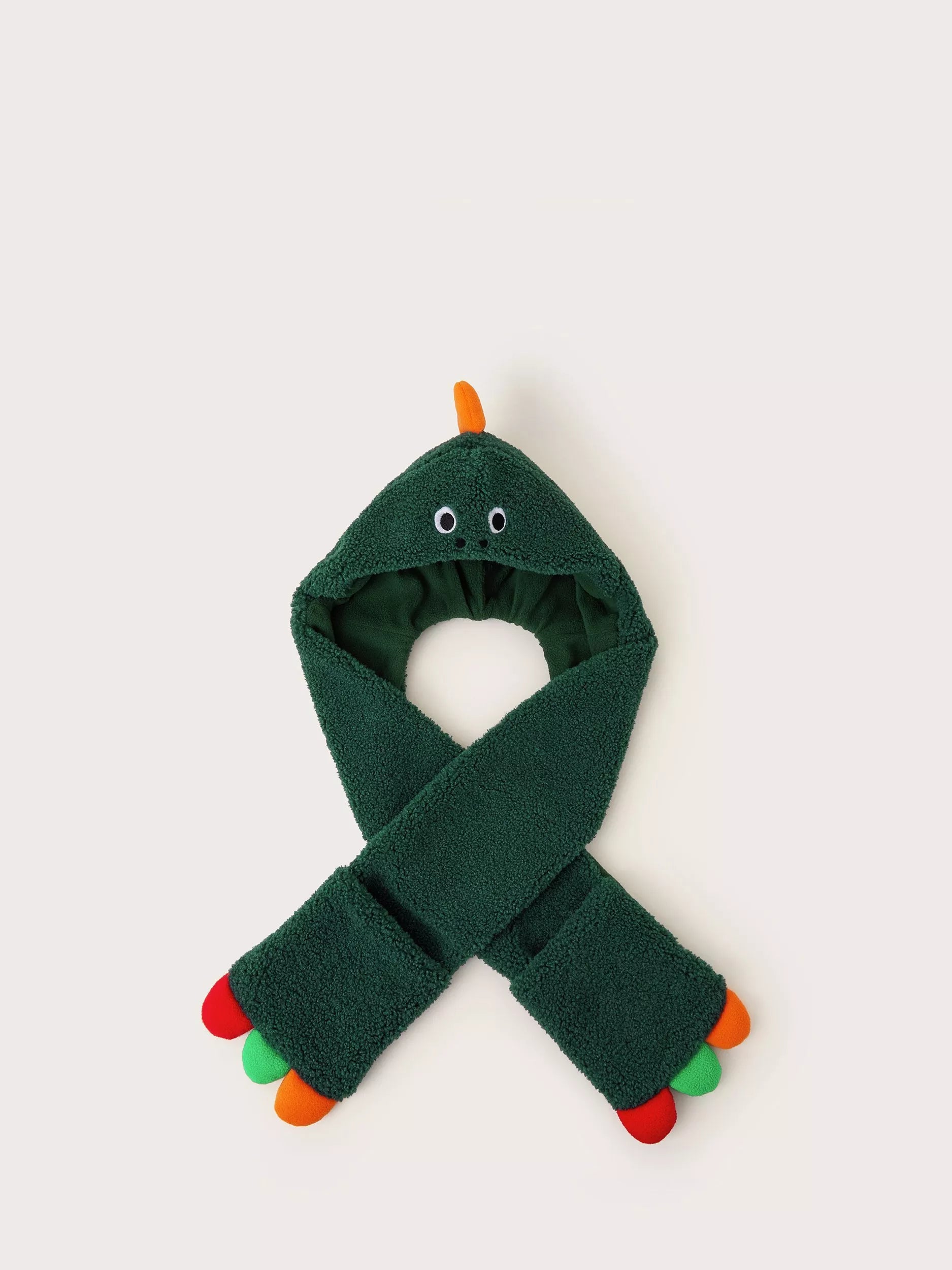 With an all-in-one, cosy borg design that includes a hat, scarf and mittens, complete with an embroidered dinosaur face with 3D scales, this is a cold-weather winner.
