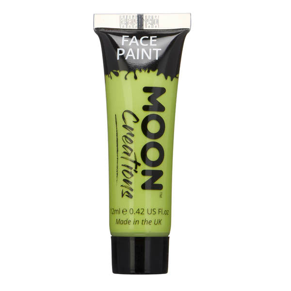 Express your creativity with Moon Creations Face Paints, featuring a vivid lime green shade for all your artistic needs. This ready-to-use formula is designed for smooth application by beginners, professionals, children, and adults.