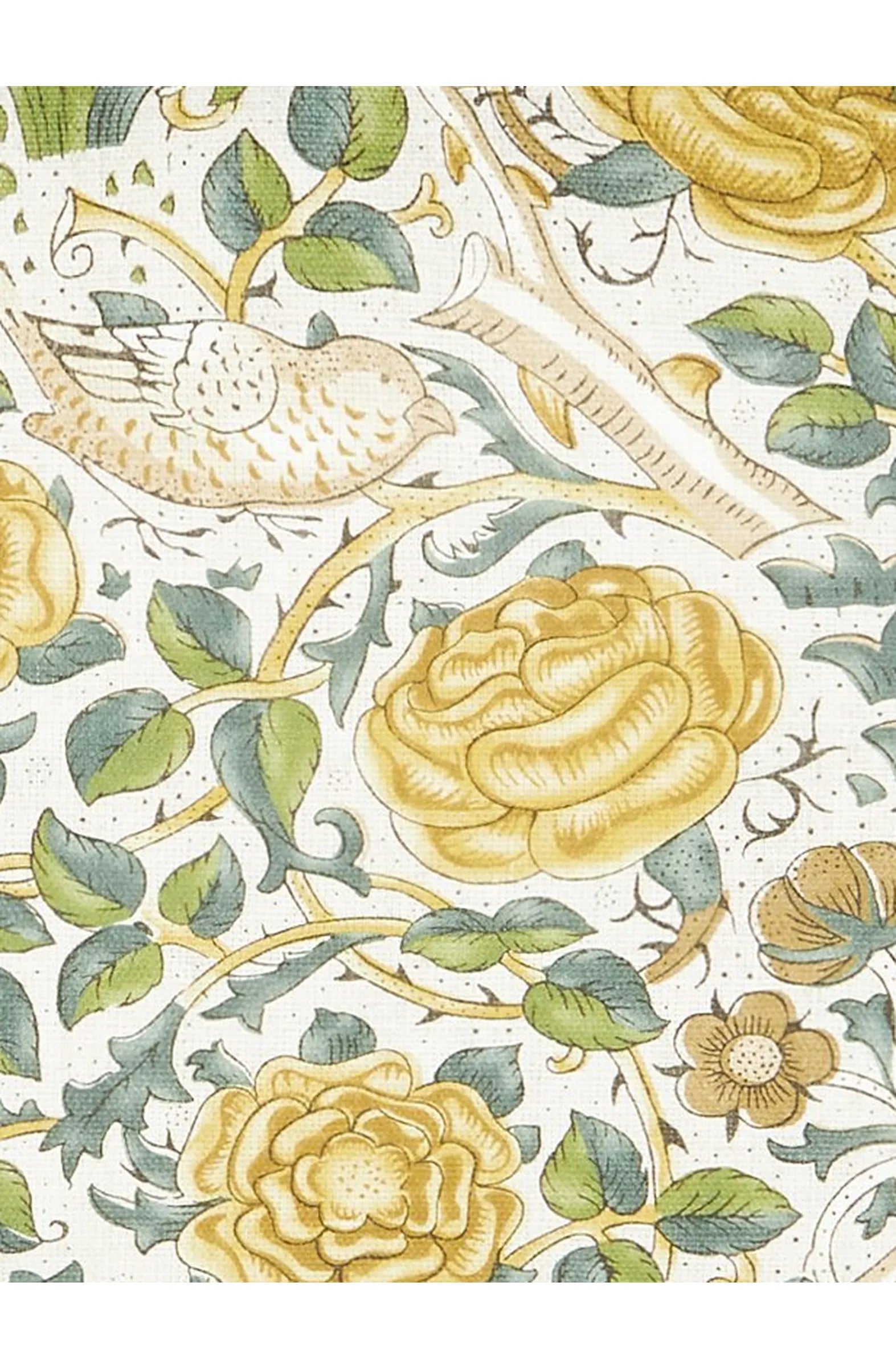 William Morris's close observation of nature's everyday dramas is evidenced here in the pair of cheerful birds that play among the thicket. Originally designed by Morris as a furnishing fabric in 1883, Rose was widely used in the drawing room of Sir Emery Walker, the noted typographer and friend of Morris.