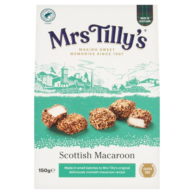 These Mrs Tillys Macaroons feature a rich fondant centre coated in smooth Belgian Chocolate and toasted coconut. Each confection is made in small batches following the original, deliciously moreish recipe established in 1997. Enjoy this indulgent Scottish sweet treat made with quality ingredients.