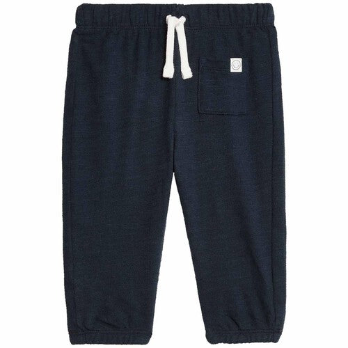 Little ones will look cool and feel comfy in these pure cotton joggers. Easy regular fit, with a drawcord fastening and ankle cuffs for a secure feel. A small smiley face tab on the pocket adds a fun finish