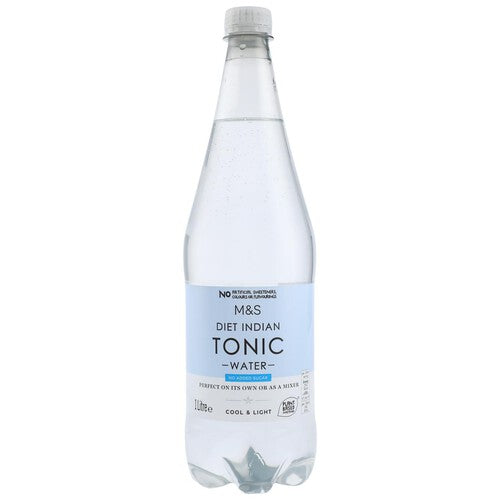 M&S Diet Indian Tonic Water offers a light and refreshing experience as a carbonated, low-calorie mixer. This product delivers the original taste profile with a gentle hint of sweetness for enjoyment straight from the bottle or mixed. It is manufactured in the UK according to quality standards.