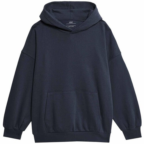This cotton-rich MS Elevated Essential Plain Hoodie is an easy choice for casual days in navy. It features a cool oversized fit, enhanced by relaxed dropped shoulders for a contemporary look. This garment successfully combines comfort with classic sporty details for everyday wear.