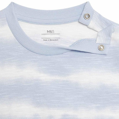 This pure cotton dress is a fun choice for kids. Comfy regular fit, with a neat round neckline and easy popper fastenings on the shoulder. An all-over tie-dye pattern gives a cheerful look.