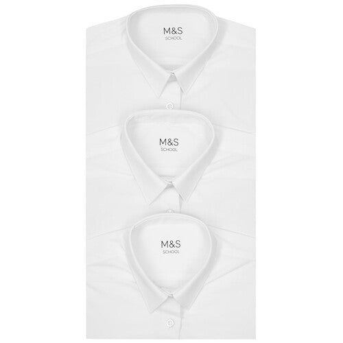 This M&S short sleeve school shirt is a reliable staple, offered here in an extra value three pack for school convenience. Each shirt incorporates timesaving technology designed to minimise necessary ironing time after washing throughout the term. This essential uniform piece ensures comfortable, ready options are available every day for your child.
