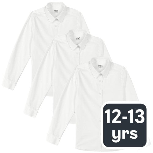MS Girls Slim Fit Easy to Iron Blouses Size 12-13 White