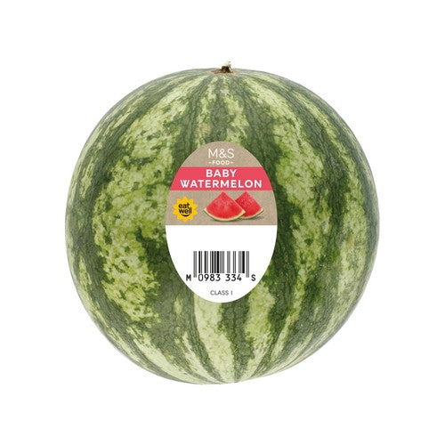 This M&S selection presents a perfectly ripe extra small baby watermelon, offering a sweet and refreshing experience. It is sourced directly from trusted M&S Select Farms, ensuring consistent quality for your kitchen. This naturally sweet fruit serves as a simple, convenient way to contribute to your recommended daily fruit intake.