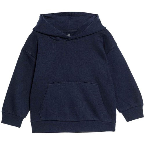 This cotton-rich MS hoodie provides a versatile and comfortable layer for your child's casual wardrobe collection. Designed with a practical regular fit, this garment ensures ease of movement throughout their day. The classic navy colour offers timeless appeal for everyday wear.