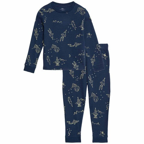These MS Space printed pyjamas offer an enjoyable, out-of-this-world theme for bedtime routines. Crafted from pure cotton, this set provides natural comfort for sensitive skin during the night. The regular fit ensures comfortable wear across cooler evenings, making them perfect for when the temperature drops.