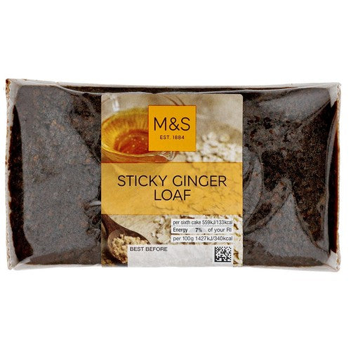 Marks & Spencer presents this classic Sticky Ginger Loaf, perfect for enjoying with a warm cup of tea or coffee. This traditional bake offers a dense, moist crumb visibly infused with warming ginger spice and sweet syrup notes. It comes ready-sliced for convenient serving straight from the protective packaging.